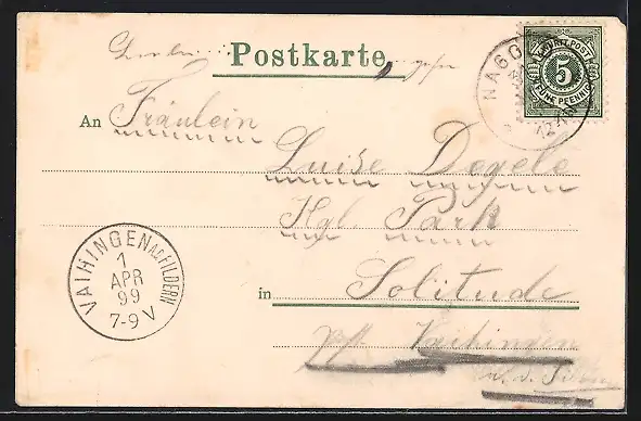 alte Ansichtskarte, gelaufen 1899, guter Zustand