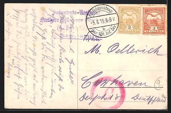 gelaufen 1915, Eckknick li. unten, guter Zustand