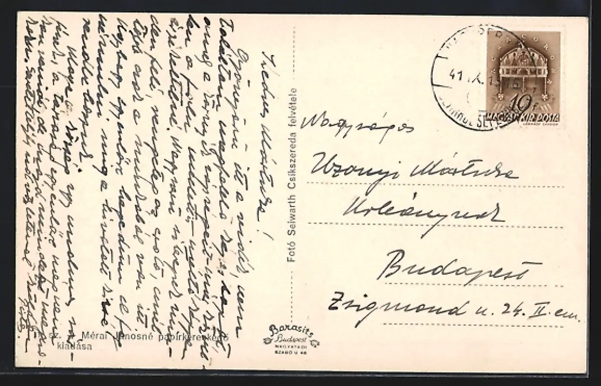 Personenbezogene Daten auf der Rückseite der Karte wurden durch blauen Textmarker unkenntlich gemacht. Die blauen Stellen sind auf die Vorderseite durchgeweicht und wirken sich negativ auf das Postkartenfoto aus