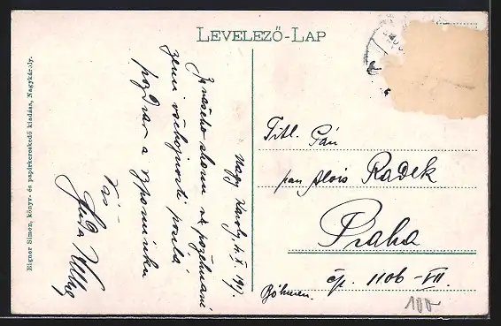 alte Ansichtskarte, gelaufen, Briefmarke entfernt, rückseitig Oberflächenschaden, guter Zustand
