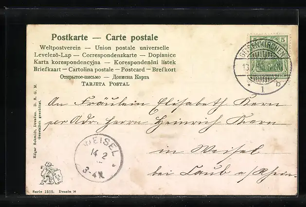 alte Ansichtskarte, gelaufen 1905, guter Zustand