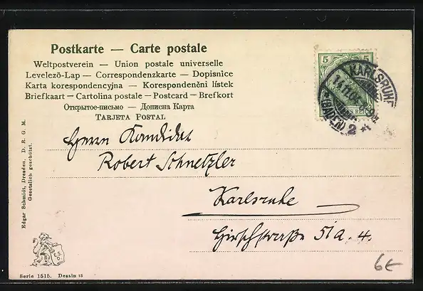 alte Ansichtskarte, gelaufen 1904, Stempelspur, guter Zustand