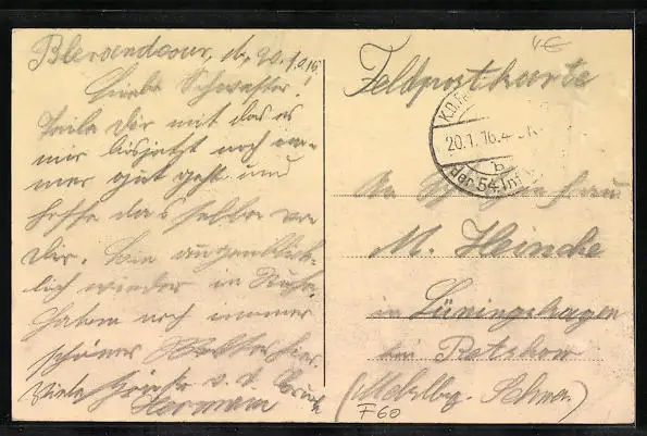 gelaufen 1916, Briefmarke entfernt, guter Zustand
