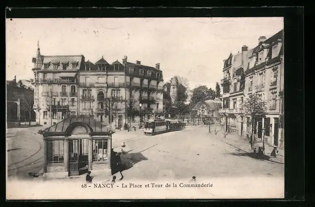 AK Nancy, La Place et Tour de la Commanderie, Strassenbahn