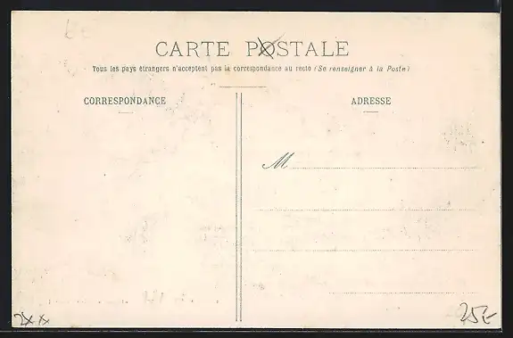 Personenbezogene Daten auf der Rückseite der Karte wurden durch blauen Textmarker unkenntlich gemacht. Die blauen Stellen sind auf die Vorderseite durchgeweicht und wirken sich negativ auf das Postkartenfoto aus