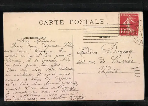 Personenbezogene Daten auf der Rückseite der Karte wurden durch blauen Textmarker unkenntlich gemacht. Die blauen Stellen sind auf die Vorderseite durchgeweicht und wirken sich negativ auf das Postkartenfoto aus