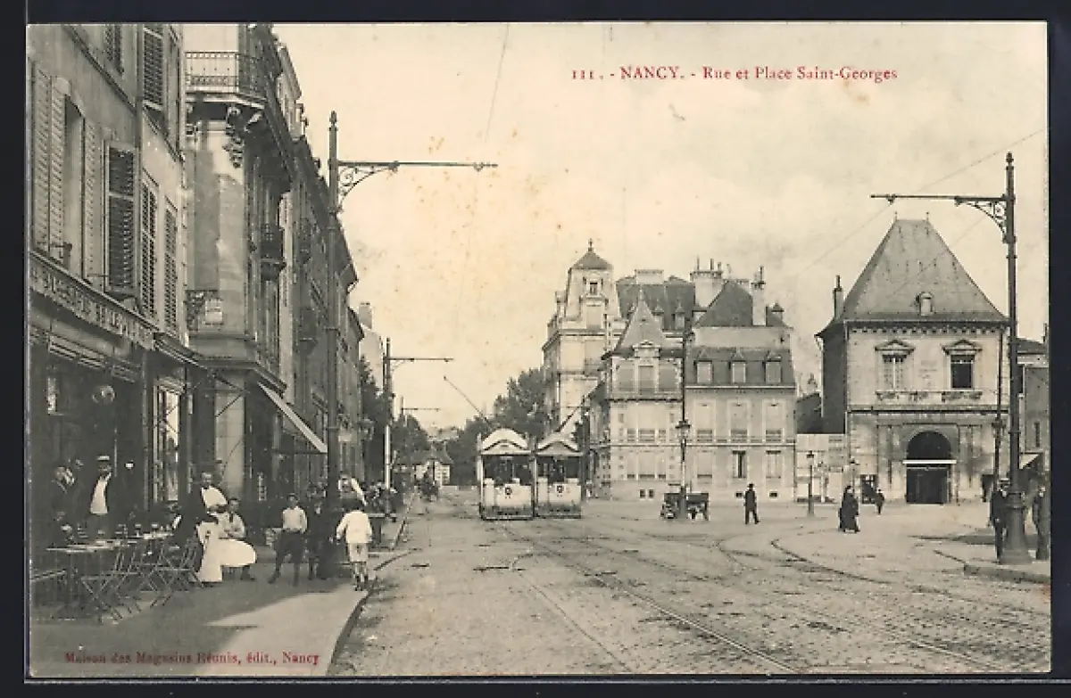 AK Nancy, Rue et Place Saint-Georges, Strassenbahn