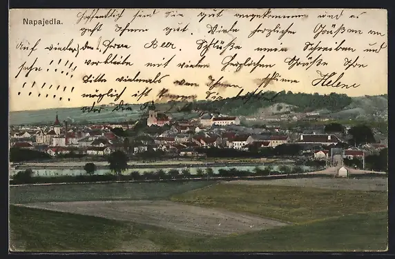 AK Napajedla, Gesamtansicht mit Gewässer aus der Vogelschau