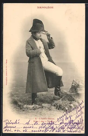 AK Napoleon, a Sainte-Hélène, Kind als Napoleon mit Fernglas