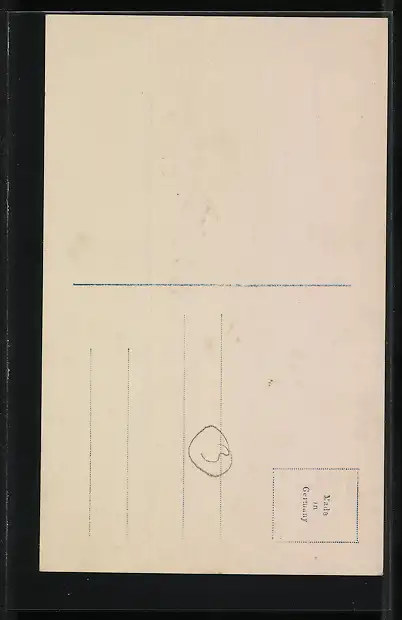 Personenbezogene Daten auf der Rückseite der Karte wurden durch blauen Textmarker unkenntlich gemacht. Die blauen Stellen sind auf die Vorderseite durchgeweicht und wirken sich negativ auf das Postkartenfoto aus