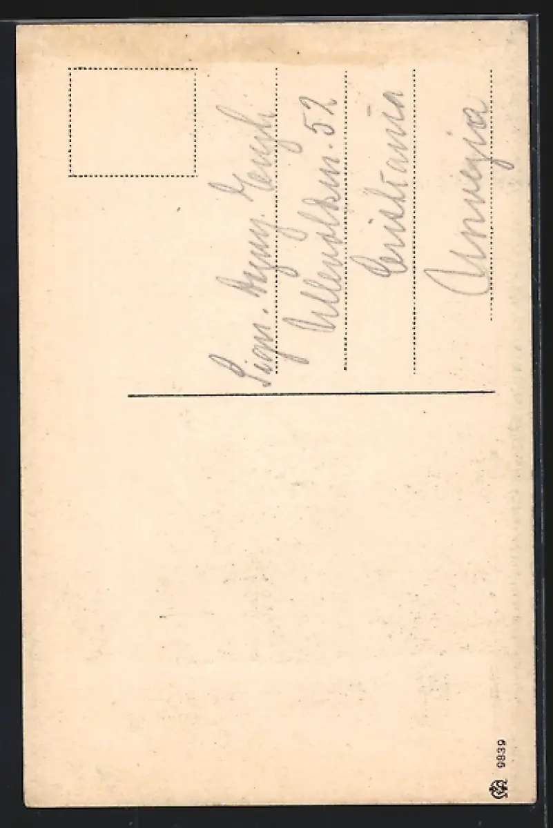 alte Ansichtskarte, ungelaufen, rückseitig Klebe- und Papierreste, guter Zustand