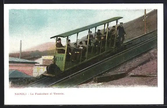 AK Napoli, La Funicolare al Vesuvio, Bergbahn