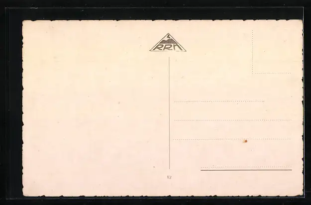 Personenbezogene Daten auf der Rückseite der Karte wurden durch blauen Textmarker unkenntlich gemacht. Die blauen Stellen sind auf die Vorderseite durchgeweicht und wirken sich negativ auf das Postkartenfoto aus