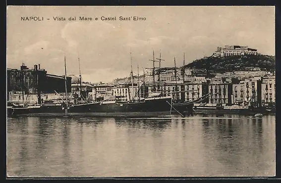 AK Napoli / Neapel, Forte S. Elmo, Hafenpartie