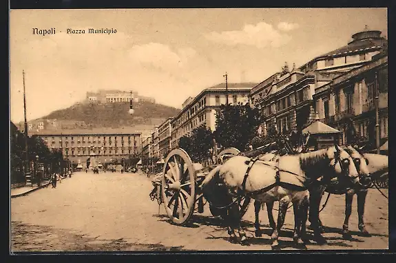 AK Napoli, Piazza Municipio, Pferdefuhrwerk