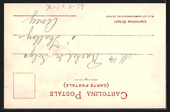 Personenbezogene Daten auf der Rückseite der Karte wurden durch blauen Textmarker unkenntlich gemacht. Die blauen Stellen sind auf die Vorderseite durchgeweicht und wirken sich negativ auf das Postkartenfoto aus