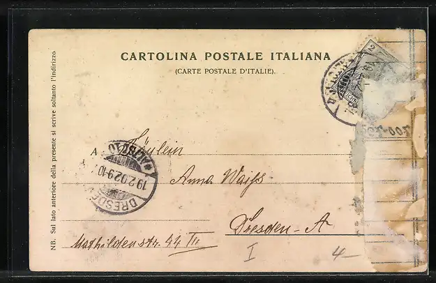 gelaufen 1902, Briefmarke entfernt, guter Zustand