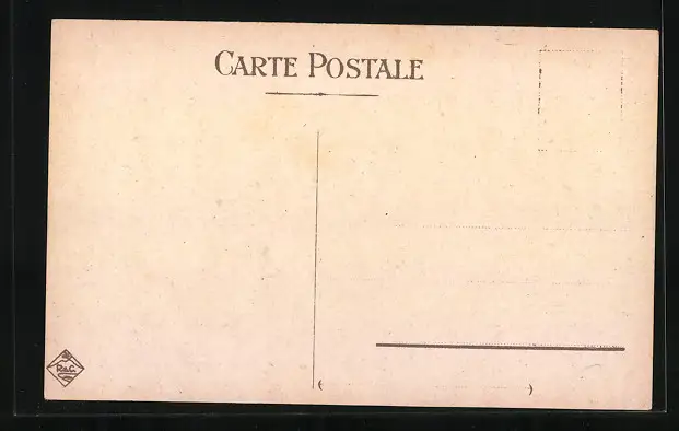 Personenbezogene Daten auf der Rückseite der Karte wurden durch blauen Textmarker unkenntlich gemacht. Die blauen Stellen sind auf die Vorderseite durchgeweicht und wirken sich negativ auf das Postkartenfoto aus