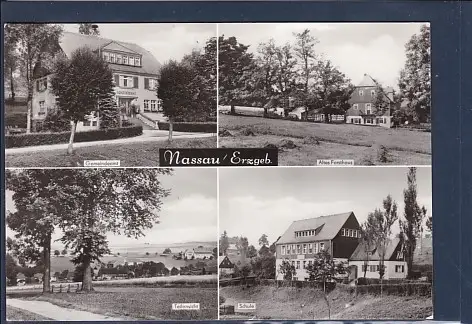 AK Nassau / Erzgeb. 4.Ansichten Gemeindeamt - Altes Forsthaus - Teilansicht - Schule, gelaufen von 1974
