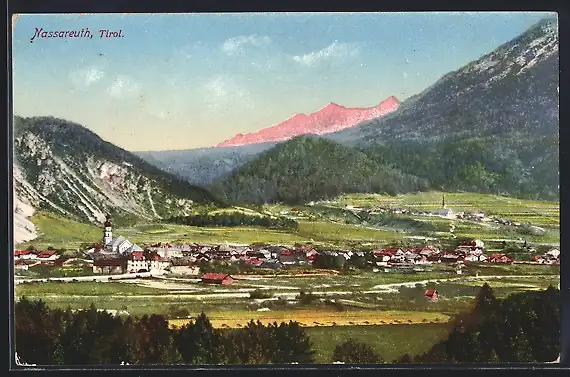 AK Nassereith /Tirol, Ortsansicht mit Bergpanorama