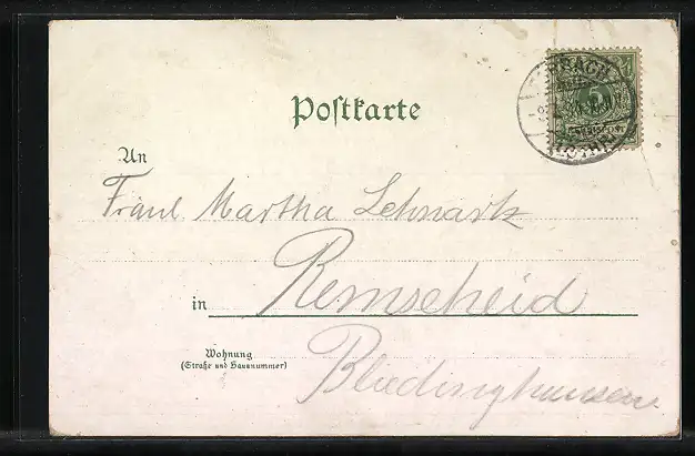 alte Ansichtskarte, gelaufen 1894, Briefmarke entfernt, rückseitig Oberflächenschaden, Eckknick li. oben, minimaler Einriss li. mittig, Bugspuren li. oben