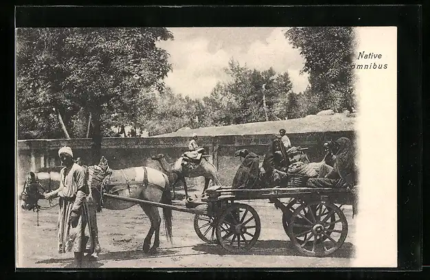 AK Native omnibus, Arabischer Mann mit Kutsche als Transportmittel