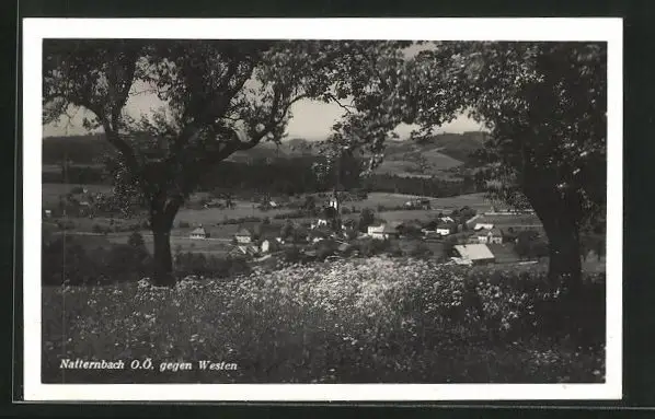 AK Natternbach, Teilansicht mit Bäumen gegen Westen