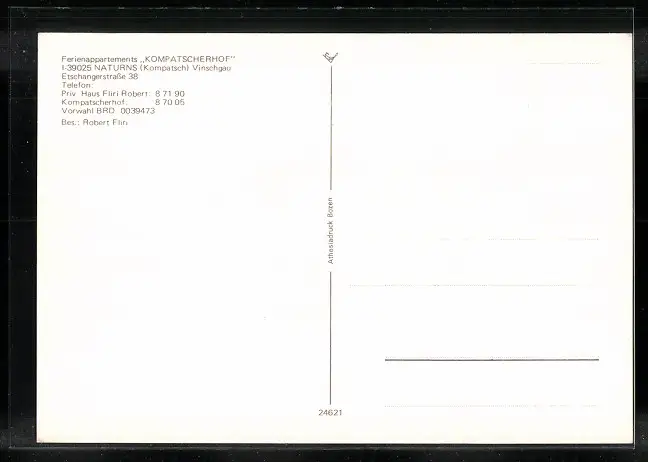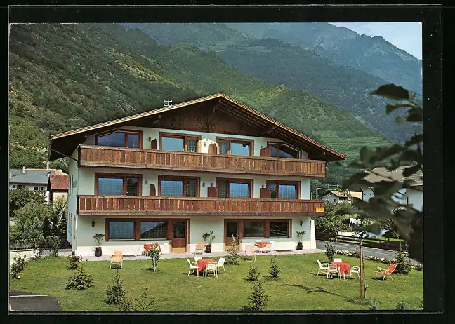 AK Naturns, Ferienappartements Kompatscherhof mit Gartenterrasse in der Etschangerstrasse