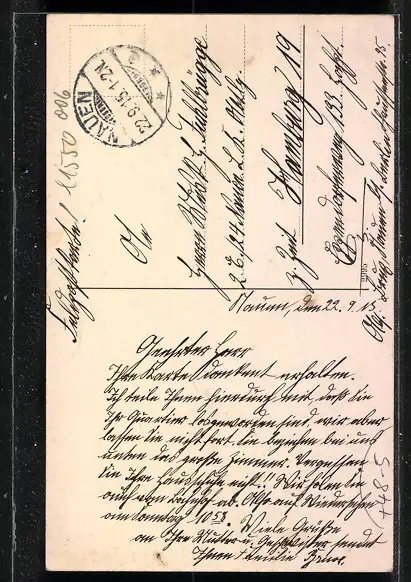 alte Ansichtskarte, gelaufen 1915 als Feldpost, guter Zustand