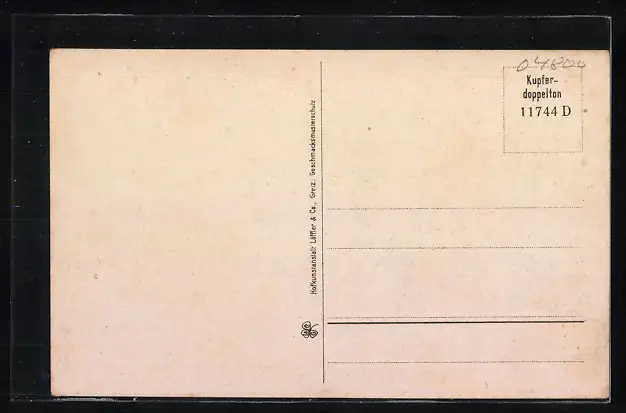 Personenbezogene Daten auf der Rückseite der Karte wurden durch blauen Textmarker unkenntlich gemacht. Die blauen Stellen sind auf die Vorderseite durchgeweicht und wirken sich negativ auf das Postkartenfoto aus