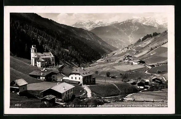 AK Navis, Ortsansicht mit Bergen und Kirche