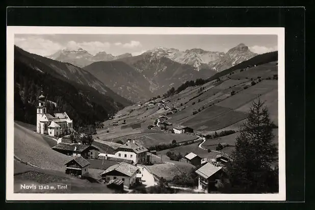AK Navis /Tirol, Ortsansicht mit Kirche und Feldern