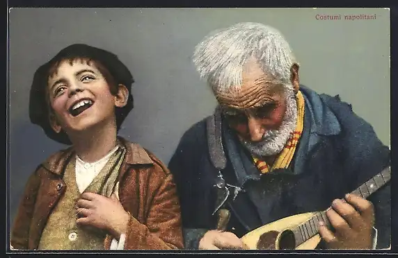 AK Neapel / Napoli, Mann spielt Mandoline und Junge singt dazu