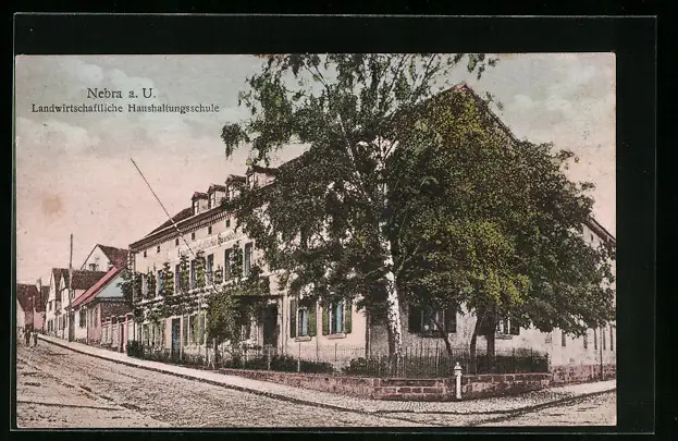 AK Nebra a. U., Landwirtschaftliche Haushaltungsschule mit Strasse