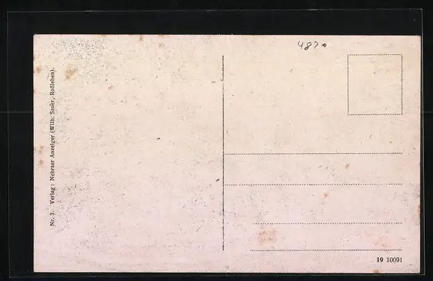 Personenbezogene Daten auf der Rückseite der Karte wurden durch blauen Textmarker unkenntlich gemacht. Die blauen Stellen sind auf die Vorderseite durchgeweicht und wirken sich negativ auf das Postkartenfoto aus