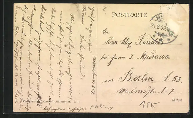 alte Ansichtskarte, gelaufen 1909, Briefmarke tw. entfernt, rückseitig Oberflächenschaden, guter Zustand