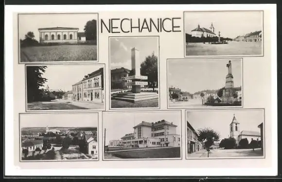 AK Nechanice, Denkmal, Marktplatz, Kirche