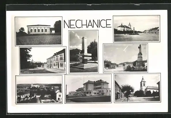 AK Nechanice, Gebäudeansichten, Marktplatz, Denkmal