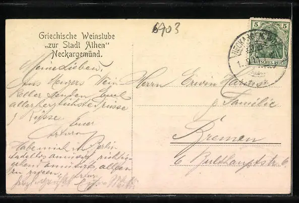 AK Neckargemünd, Griechische Weinstube zur Stadt Athen
