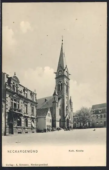 AK Neckargemünd, Kath. Kirche mit Vorplatz