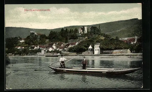 AK Neckarsteinach, Flusspartie mit Boot