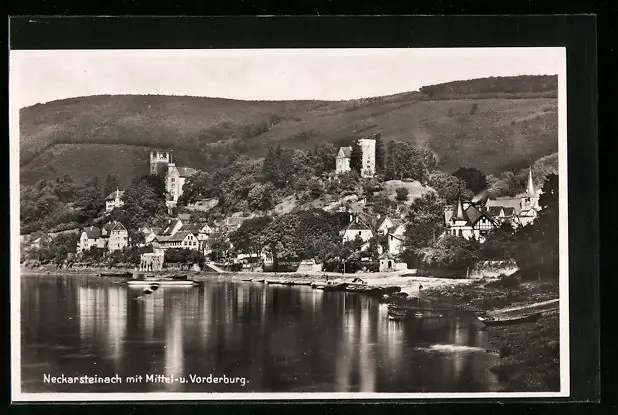 AK Neckarsteinach, Ortsansicht mit Mittel- und Vorderburg