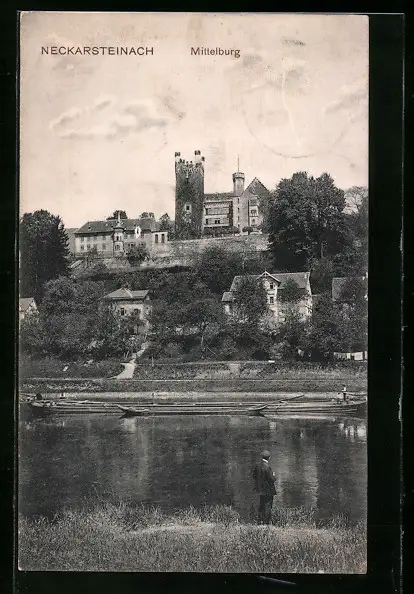 AK Neckarsteinach, Teilansicht mit Mittelburg