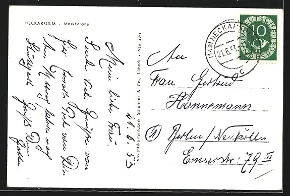 AK Neckarsulm, Markstrasse mit Cafe Raab