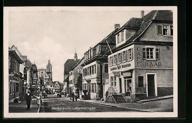 AK Neckarsulm, Marktstrasse am Cafe Raab