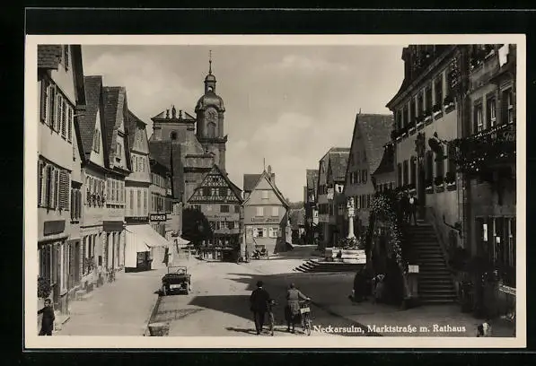 AK Neckarsulm, Marktstrasse mit Geschäften und Rathaus