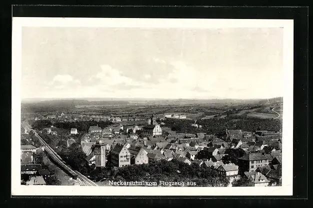 AK Neckarsulm, Ortsansicht mit Kirche vom Flugzeug aus