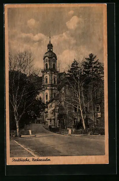 AK Neckarsulm, Strassenpartie an der Stadtkirche