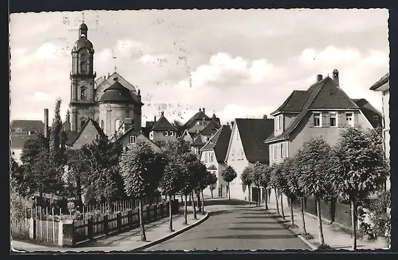 AK Neckarsulm, Strassenpartie mit Stadtkirche