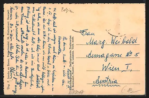 alte Ansichtskarte, gelaufen, Briefmarke entfernt, guter Zustand